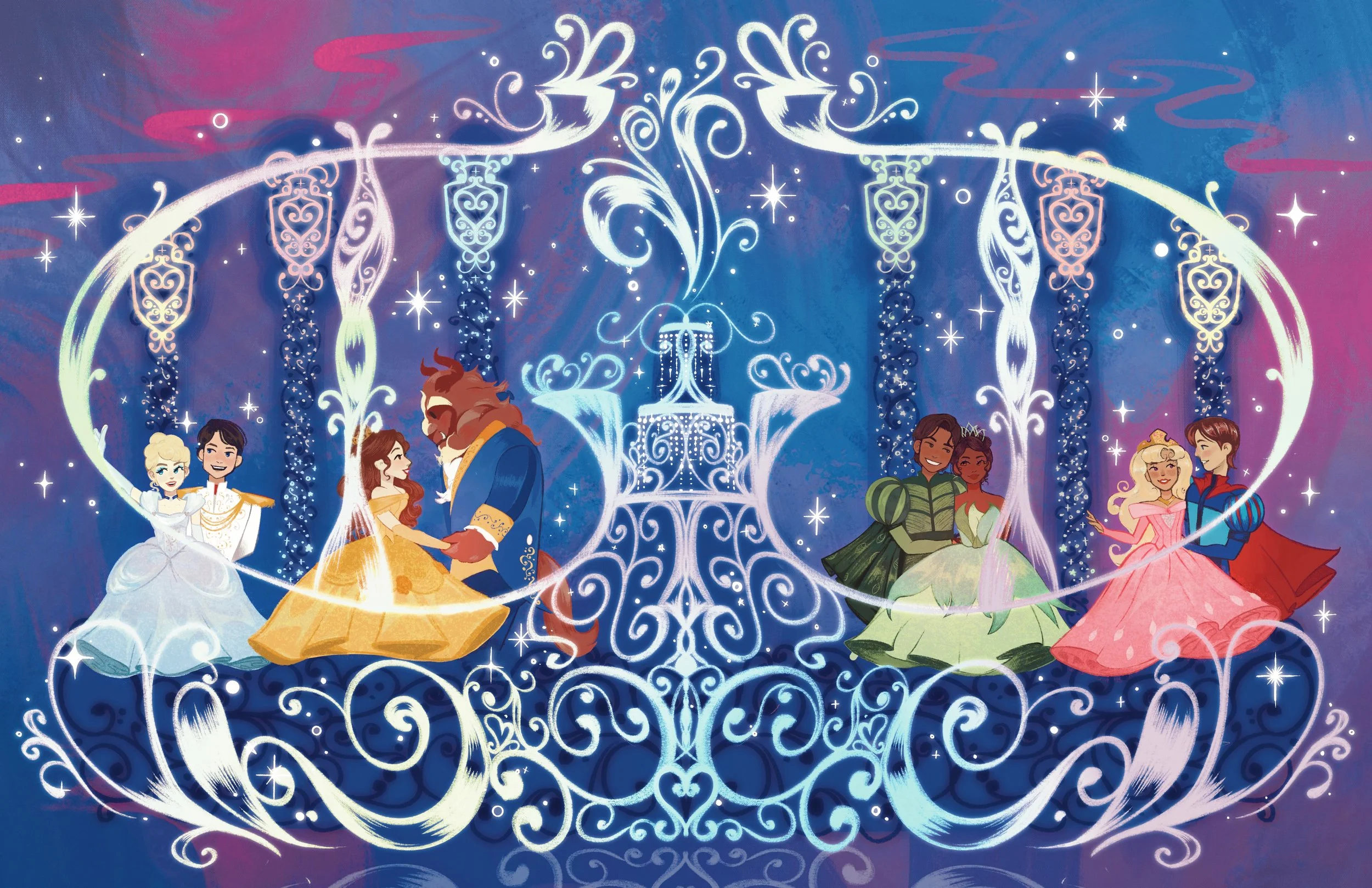 For this project, I’ve been drawing the floats from the new parade Disney’s Starlight, which Disney Live Entertainment just wrapped up and debuted last year. As someone who works with these performers on a daily basis, it’s amazing to see how much this parade has impacted people for the better and made so many of their dreams come true. I’m working on capturing the magic of each of these floats for them and have been playing with new techniques to get there!